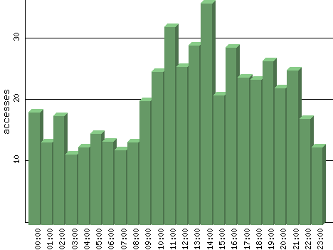 | Hour | Accesses | % | Bytes | % | Visits | % | Bits per Sec | Bytes per Sec |