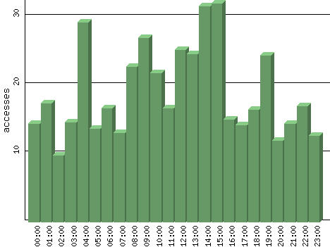 | Hour | Accesses | % | Bytes | % | Visits | % | Bits per Sec | Bytes per Sec |