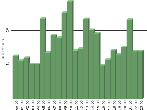 | Hour | Accesses | % | Bytes | % | Visits | % | Bits per Sec | Bytes per Sec |