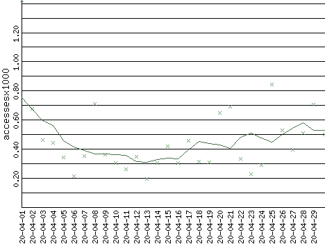 | Date | Accesses | % | Bytes | % | Visits | % | Bits per Sec | Bytes per Sec |