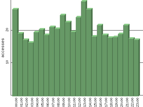 | Hour | Accesses | % | Bytes | % | Visits | % | Bits per Sec | Bytes per Sec |