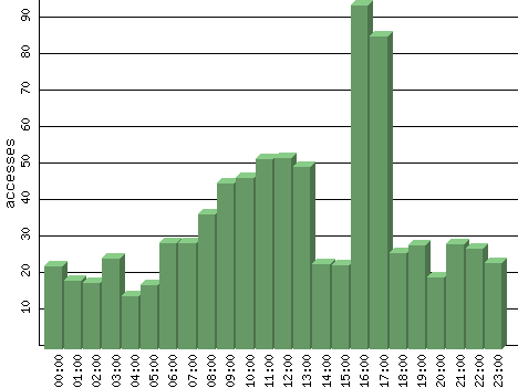 | Hour | Accesses | % | Bytes | % | Visits | % | Bits per Sec | Bytes per Sec |