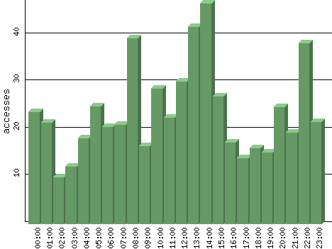 | Hour | Accesses | % | Bytes | % | Visits | % | Bits per Sec | Bytes per Sec |